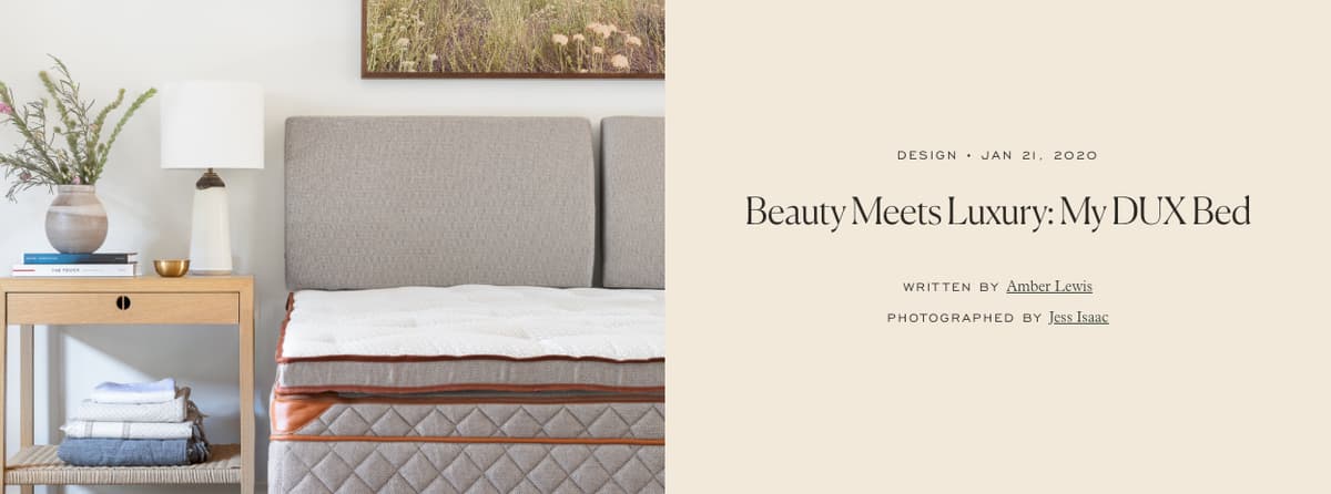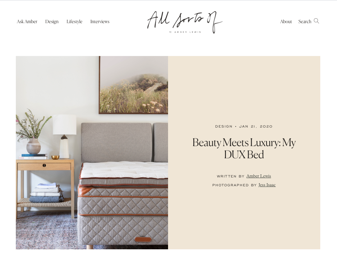 Amber Lewis, ALL SORTS OF – Þegar ég hannaði húsið mitt vildi ég fjárfesta í hlutum sem myndu endast að eilífu. Það er unaðsleg tilfinning að koma með fyrsta flokks húsgagn inn á heimilið sem á eftir að vera elskað í mörg ár. Rúmið er afar mikilvægt húsgagn því við eyðum svo miklum tíma þar. (Ég er hins vegar ekki þekkt fyrir að sofa mikið, en ég er að reyna að bæta mig!!)