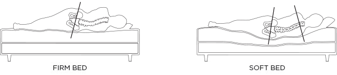 Of mjúk dýna veitir hins vegar ekki fullnægjandi stuðning. Líkaminn sígur niður sem veldur því að axlirnar og mjaðmirnar klemmast saman og sveigja upp á hrygginn. Á sama hátt og stíf rúm setur þessi stelling þrýsting á mjóbakið og veldur því að vöðvarnir eru spenntir alla nóttina við að verja hrygginn.