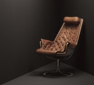 Jetson-stóllinn verður til, sem er einstakur hönnunargripur með sæti sem hangir í lausu lofti.