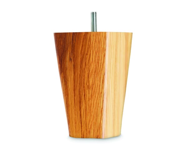 Ferhyrndur viðarfótur úr gegnheilum við. Neðst á fætinum er málmhúðun, til að gera fótinn fallegri.