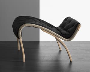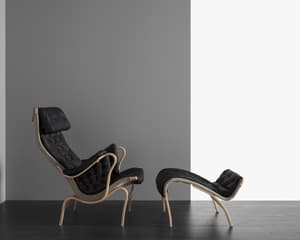 Sígildur skemill, hannaður af Bruno Mathsson. Hann er gerður til að fara vel við Ingrid til frekari þægindaauka.