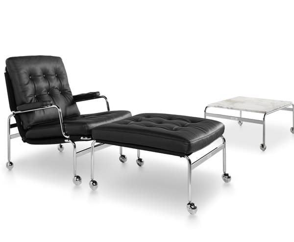 Sígildi Karin-hægindastóllinn var hannaður af Bruno Mathsson árið 1969, sem fyrsta húsgagnið sem varð til í samstarfi sem stóð yfir í nokkra áratugi. Þessi glæsilegi stóll er ómissandi hluti af þeirri vörulínu og er aðeins þægilegri en Karin-stóllinn, með fylltum sessum sem hvíla á krómhúðaðri grind með stoðneti.