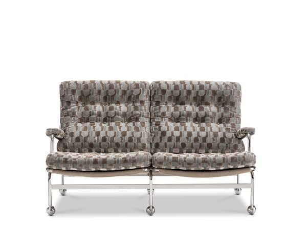 Karin 73 er glæsilegur tveggja sæta sófi byggður á sígildri hönnun með fallegri krómgrind og sessum með djúpum stungum.