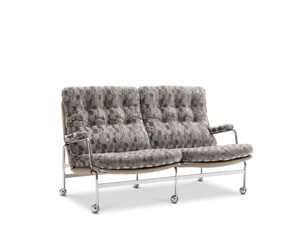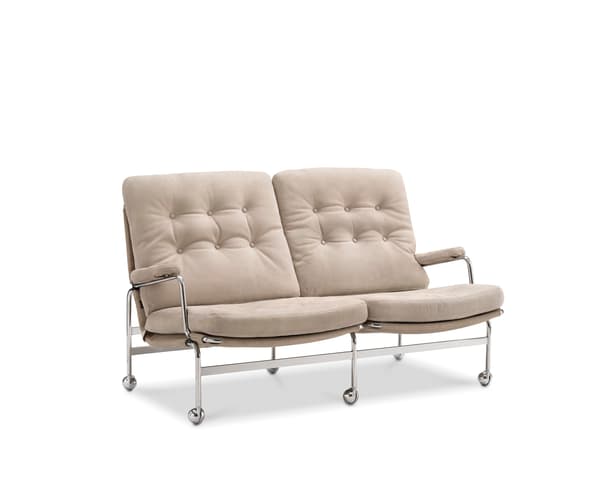 Þessi glæsilegi tveggja sæta sófi passar sérlega vel við upprunalega Karin-hægindastólinn sem hannaður var af Bruno Mathsson árið 1969. Hann er hannaður á grunni sígildu vörulínunnar, með þægilegum, bólstruðum sessum sem hvíla á krómhúðaðri grind með stoðneti. Auk sófa og upprunalega stólsins inniheldur Karin-vörulínan einnig skemil og borð í ýmsum stærðum.