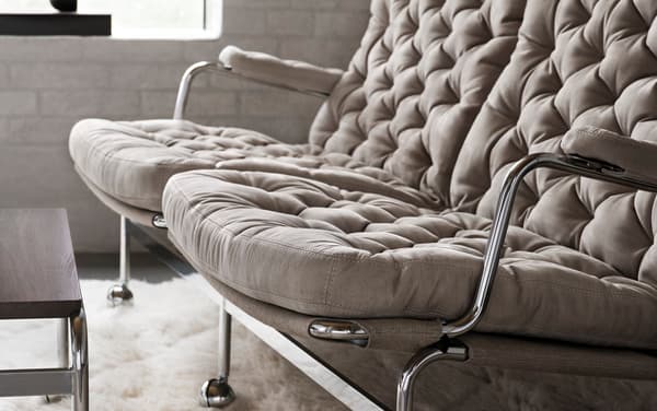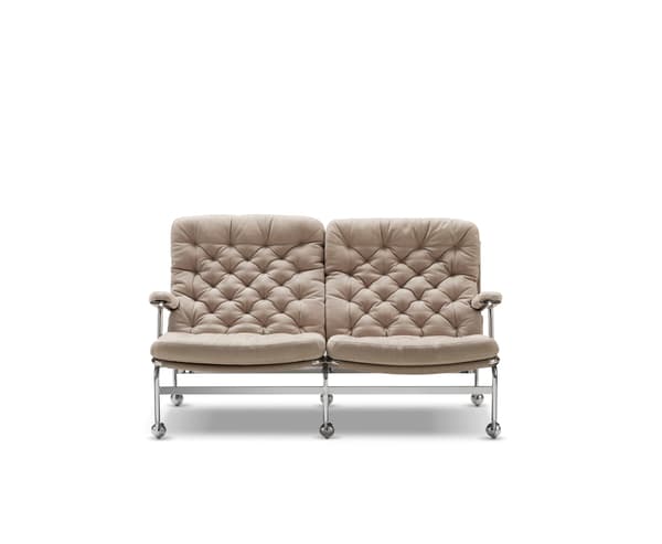 Karin 73 er glæsilegur tveggja sæta sófi byggður á sígildri hönnun með fallegri krómgrind og sessum með djúpum stungum.
