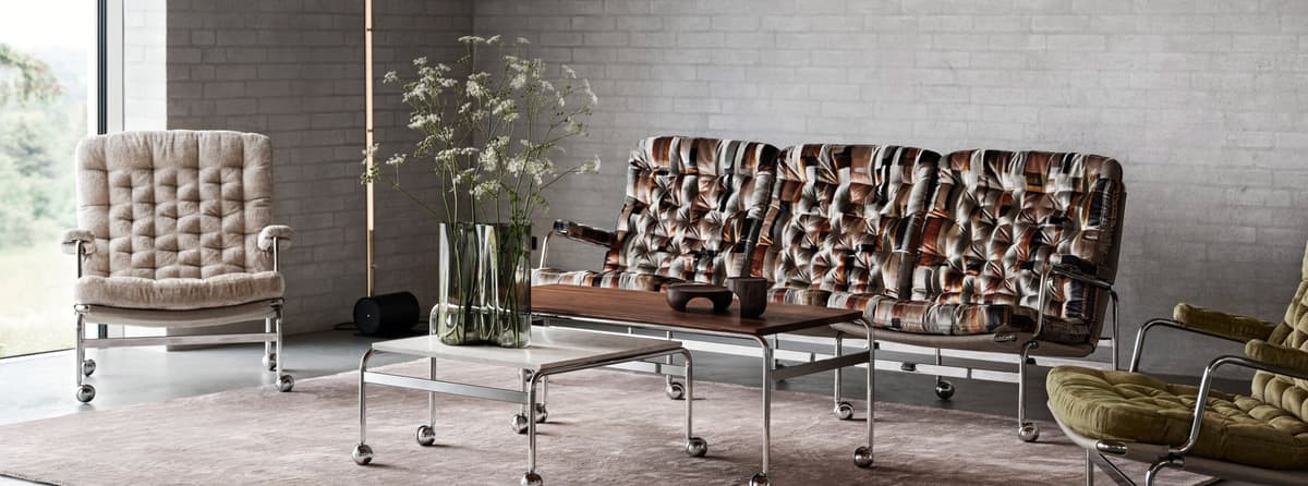 Karin 73 dregur nafn sitt af árinu sem hann var settur á markað og er fyrsta útfærslan af upprunalega Karin-hægindastólnum sem Bruno Mathsson hannaði. Nú förum við enn lengra með vörulínuna og bjóðum upp á þriggja sæta sófa í sama sígilda og fágaða útliti. Þægilegar, bólstraðar sessur sem hvíla á krómhúðaðri grind með stoðneti veita einstakan lúxus og þægindi. Auk sófa og upprunalega stólsins inniheldur Karin 73-vörulínan einnig skemil og borð í ýmsum stærðum.