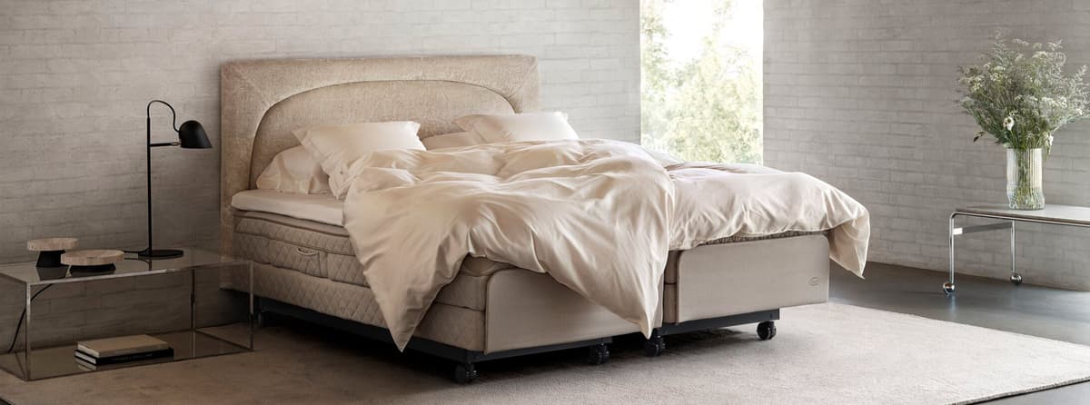 Kynntu þér háþróaðasta stillanlega rúmið á markaðnum. Dux Motion býður upp á meiri sérstillingu en nokkru sinni fyrr, en það er bæði með hækkunarkerfi og hlutaskipta Sustainable Comfort-svefnkerfið. Með því að þrýsta einu sinni á þráðlausu fjarstýringuna færðu ekki aðeins nákvæmlega þau þægindi og staðsetningu sem þú kýst, heldur getur einnig stillt svæðið við höfuðið sérstaklega.