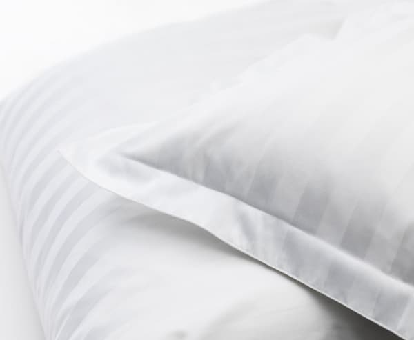 Sígilt koddaver með fallegri saumbrún og vasalokun, gerð úr kembdri, satínofinni bómull.
